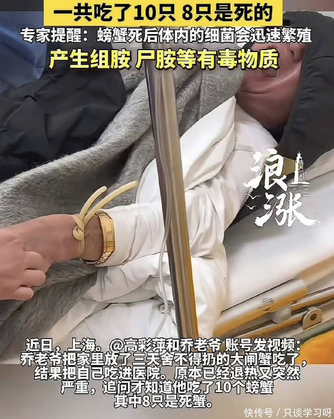 按理说乔老爷子是上海人,应该有吃螃蟹的尝试。可能就是抱着侥幸心理吧,认为螃蟹刚死没多久、吃了应该也没啥问题。